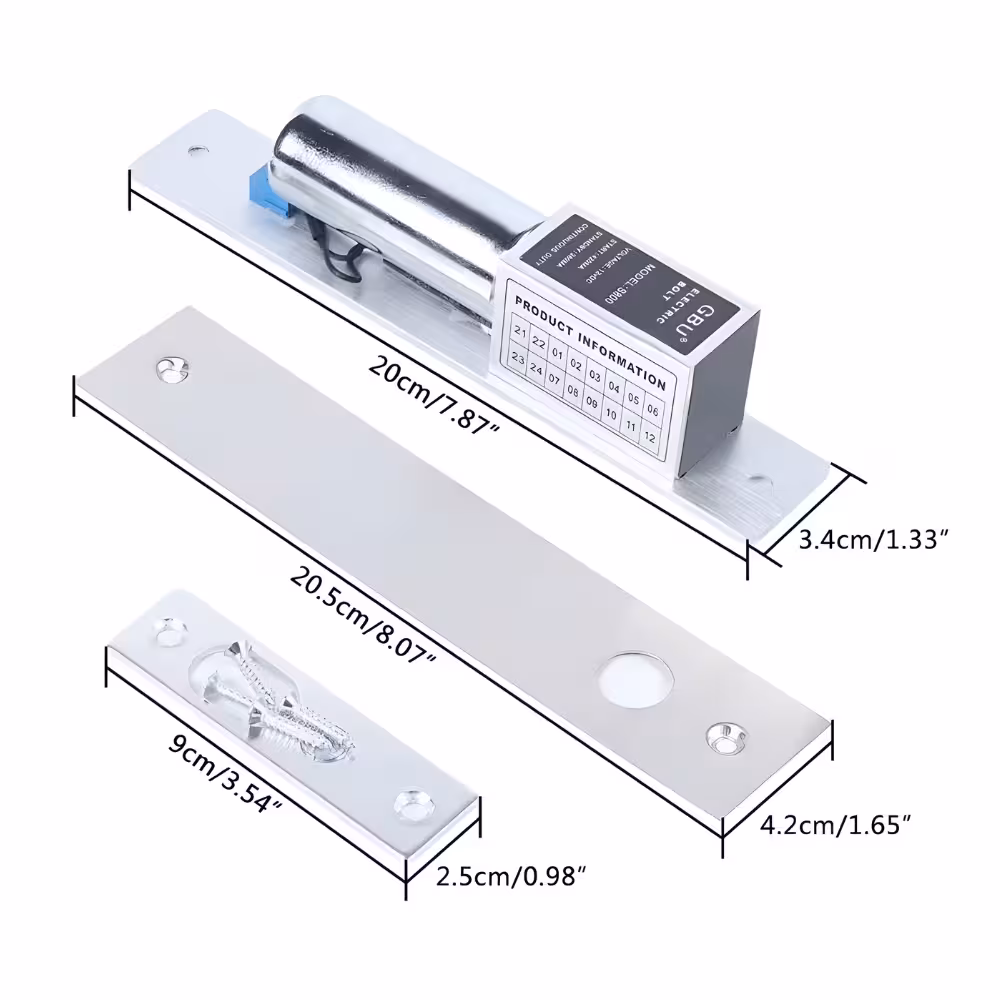 Enhance door security with this DC12V Stainless Steel Electric Bolt Lock, designed for automatic and access-controlled door systems. This electronic drop bolt lock provides strong, reliable locking by extending a solid stainless steel bolt into the door frame, ensuring firm and secure closure.